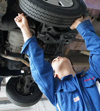 車検、点検整備では常にお客様の声に耳を傾け、信頼の技術で整備させていただきます。修理時や車検時だけでなく、日常の点検整備や最新の故障診断機を使用した整備、修理も可能です。